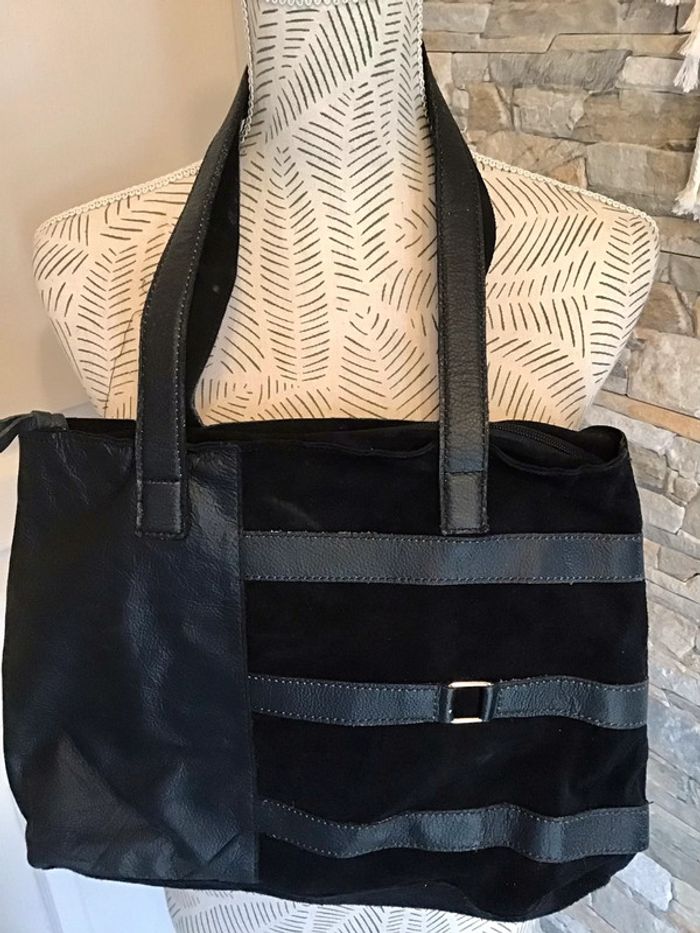 Beau sac à main bi matière noir 35-30 cm Mas collection - photo numéro 6