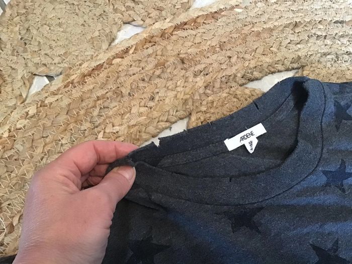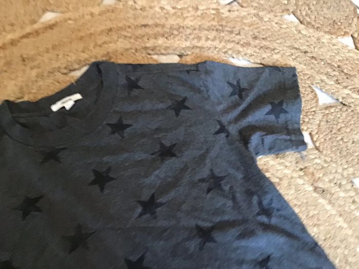 🌸 t-shirt gris avec étoiles de taille Xs Non Servis 🌸 100 % coton, avec l’encolure et le bout des manches effet découper, ce n’est pas un défaut c’est le T-shirt qui est comme ça ⚠️⚠️ SI VOUS DÉSIREZ FAIRE UN LOT 📦 🌸N’hésitez pas à me le demander je ferait une annonce global de vos articles pour faire un seul FDP🌸🌸🌸 ➡️ N’HÉSITEZ PAS À M’AJOUTER DANS VOS FAVORIS