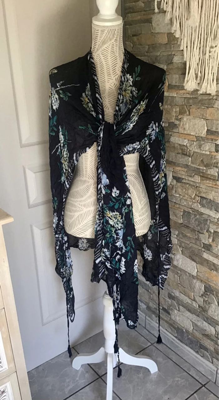 Paréo à porter de divers façon bleu marine à motif fleurit taille unique - photo numéro 1