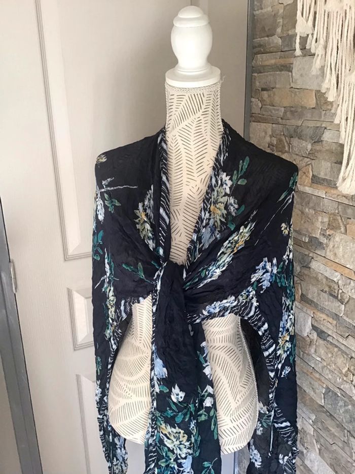 Paréo à porter de divers façon bleu marine à motif fleurit taille unique - photo numéro 3