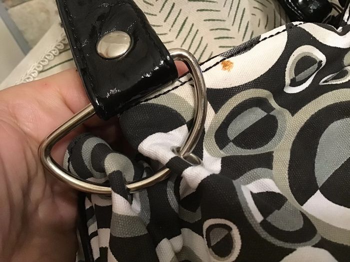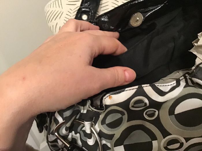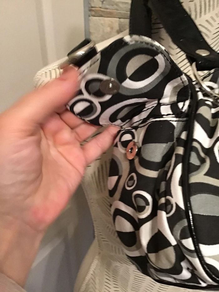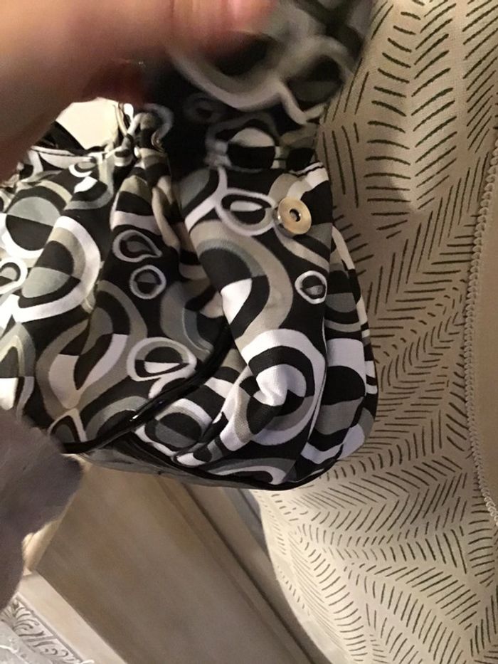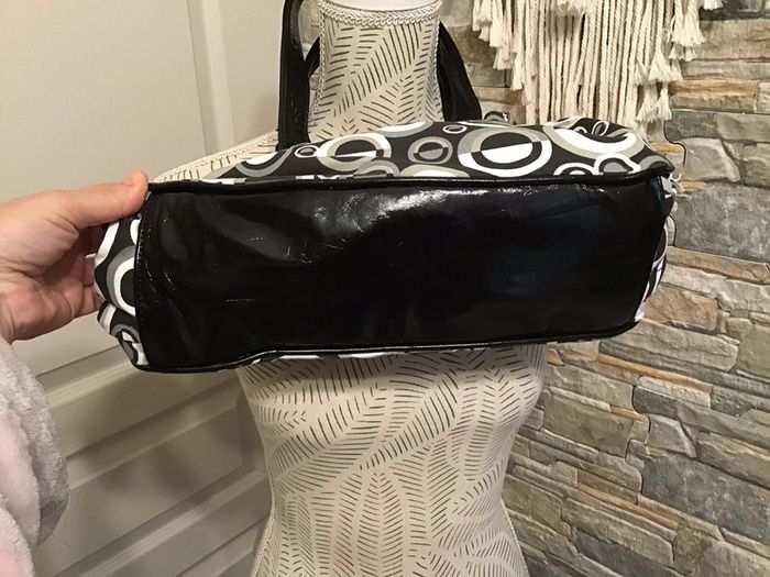 🌸 joli sac à main de marque Pinky le coloris noir et blanc avec un vernis, de 33 X 17 cm, avec 2 pochettes à pression sur les côtés,Non Servis 🌸 se ferment par pression, deux pochettes intérieur, léger défaut mineur une petite tache à l’arrière voir dernières photos et un petit peu de vernis d’enlever à l’intérieur en retirant l’étiquette vraiment pas méchant se voit à peine, jamais servi ⚠️⚠️ SI VOUS DÉSIREZ FAIRE UN LOT 📦 🌸N’hésitez pas à me le demander je ferait une annonce global de vos articles pour faire un seul FDP🌸🌸🌸 ➡️ N’HÉSITEZ PAS À M’AJOUTER DANS VOS FAVORIS