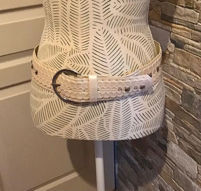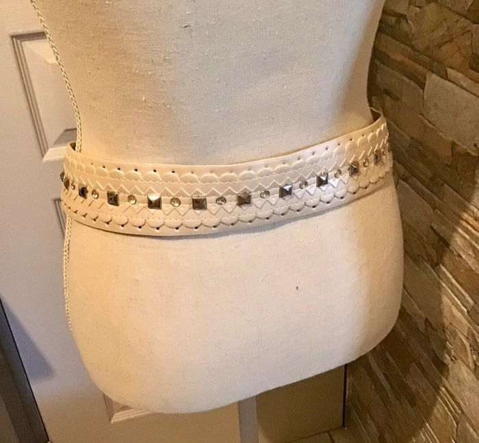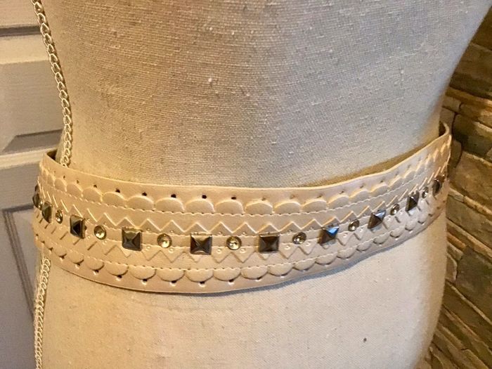 🌸 Jolie ceinture beige rosé avec strass argenté de taille 85, large de 5 cm Non Servis ⚠️⚠️ SI VOUS DÉSIREZ FAIRE UN LOT 📦 , 🌸N’hésitez pas à me le demander je ferait une annonce global de vos articles pour faire un seul FDP🌸🌸🌸 ➡️ N’HÉSITEZ PAS À M’AJOUTER DANS VOS FAVORIS