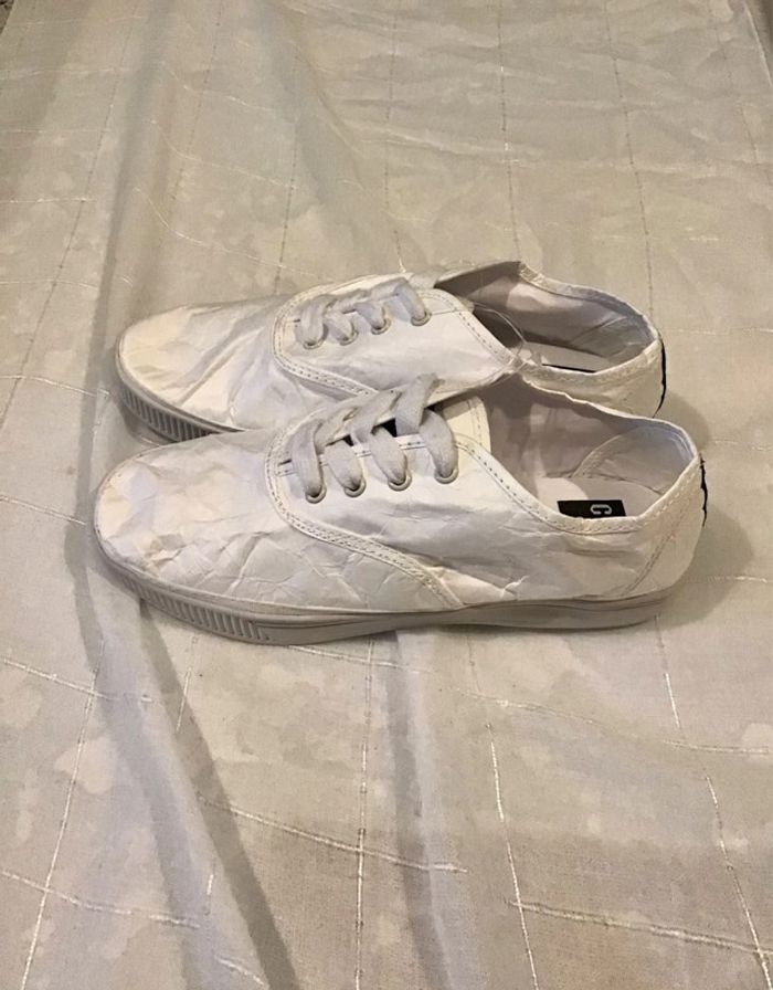 🌸 Baskets jogger blanches en Tyvek de taille 37 , Non Servis 🌸 De marque Civic duty , 🌸 baskets en Tyvek, Matière et coresponsable respirante confortable et aussi imperméable que résistante, 🌸 La matière est préalablement froissée pour donner aux chaussures à Look vintage ⚠️⚠️ SI VOUS DÉSIREZ FAIRE UN LOT 📦 , 🌸N’hésitez pas à me le demander je ferait une annonce global de vos articles pour faire un seul FDP🌸🌸🌸 ➡️ N’HÉSITEZ PAS À M’AJOUTER DANS VOS FAVORI