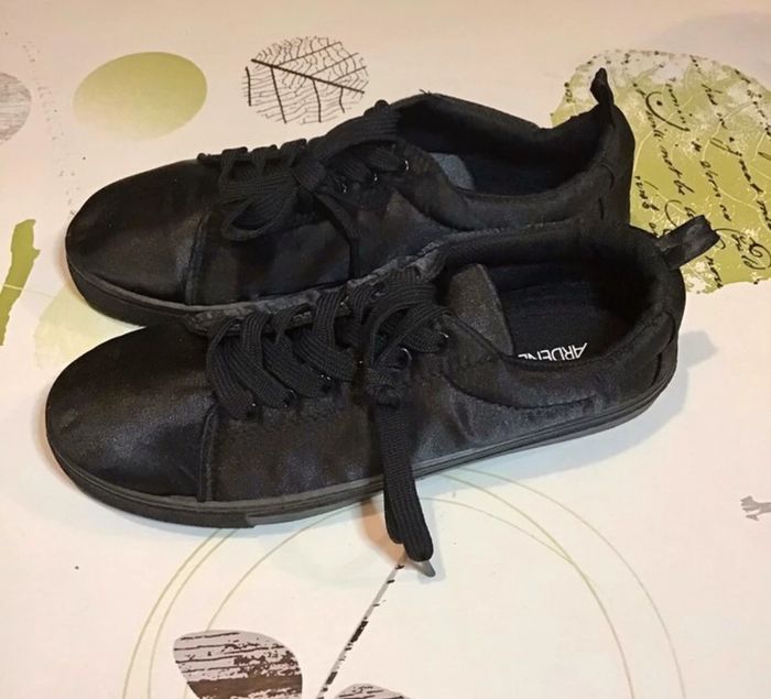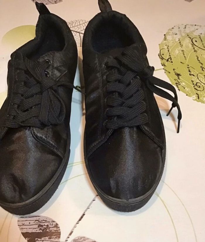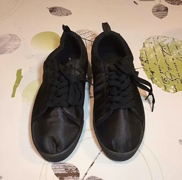 🌸 Paire de basket noir satiné taille 37 Non Servis ⚠️⚠️ SI VOUS DÉSIREZ FAIRE UN LOT 📦 , 🌸N’hésitez pas à me le demander je ferait une annonce global de vos articles pour faire un seul FDP🌸🌸🌸 ➡️ N’HÉSITEZ PAS À M’AJOUTER DANS VOS FAVORIS