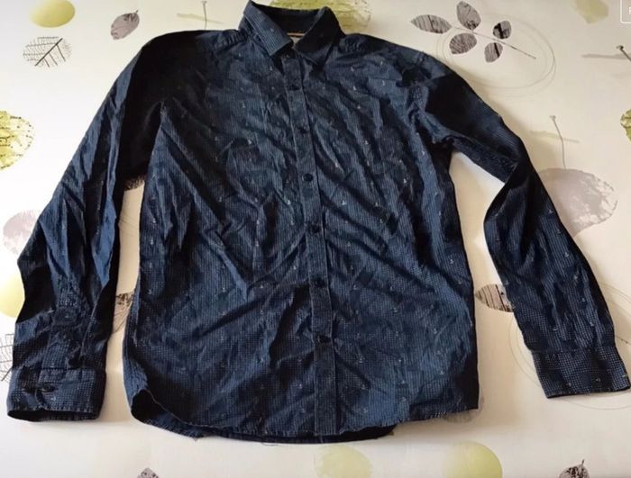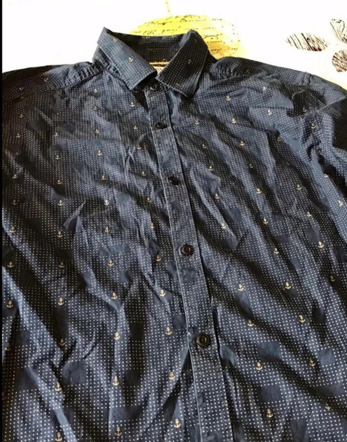🌸 Chemise manche longue taille S taille ajustée couleur marine et dorée TBE 🌸 Marque ARMAND THIERY ⚠️⚠️⚠️ SI VOUS DÉSIREZ FAIRE UN LOT 📦 , 🌸N’hésitez pas à me le demander je ferait une annonce global de vos articles pour faire un seul FDP🌸🌸🌸 ➡️ N’HÉSITEZ PAS À M’AJOUTER DANS VOS FAVORIS