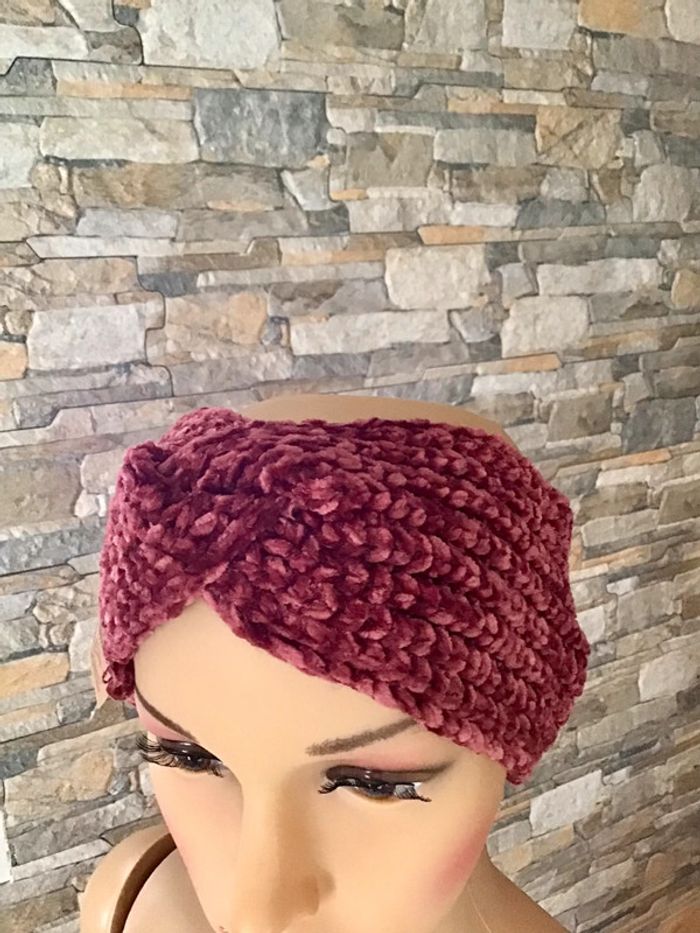 Bandeaux tête hiver en maille bordeaux home deco cocooning