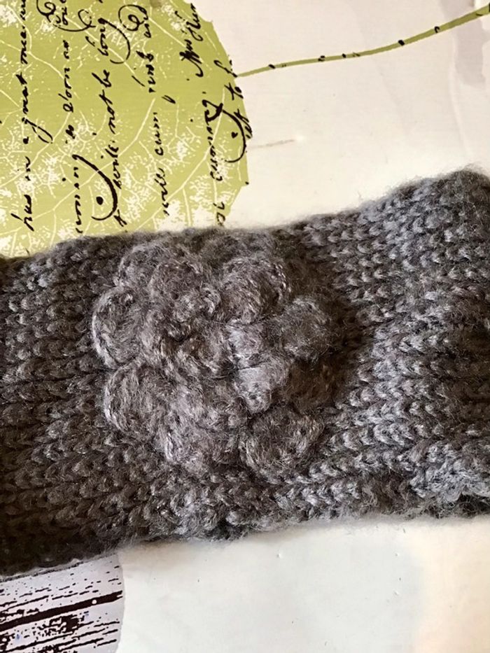 Joli bandeaux tête en laine gris avec fleur taille unique adulte