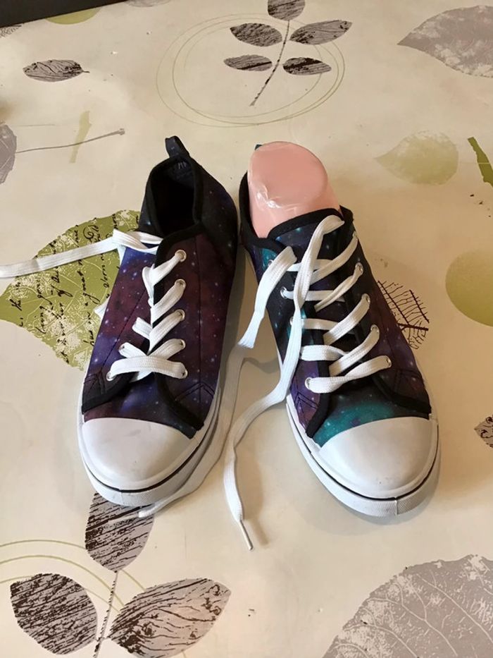 Basket basse taille 38 dans les tons noir violet turquoise - photo numéro 1