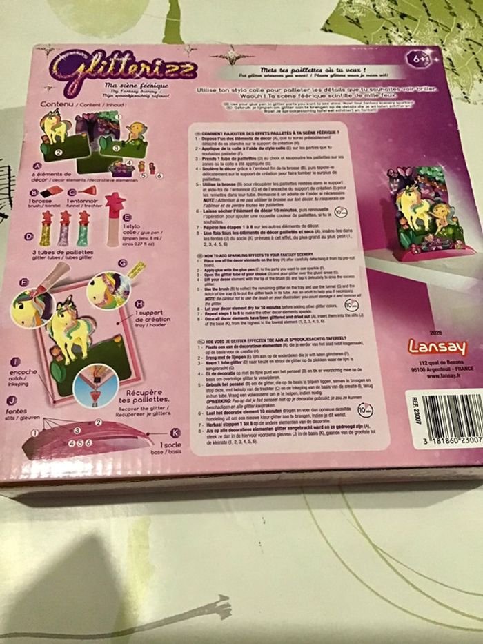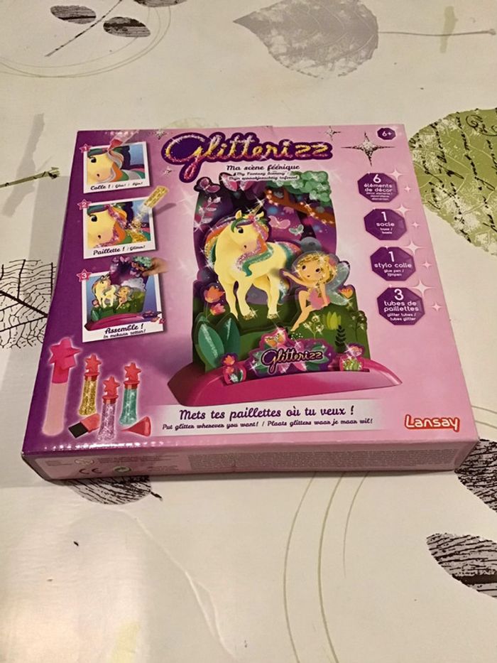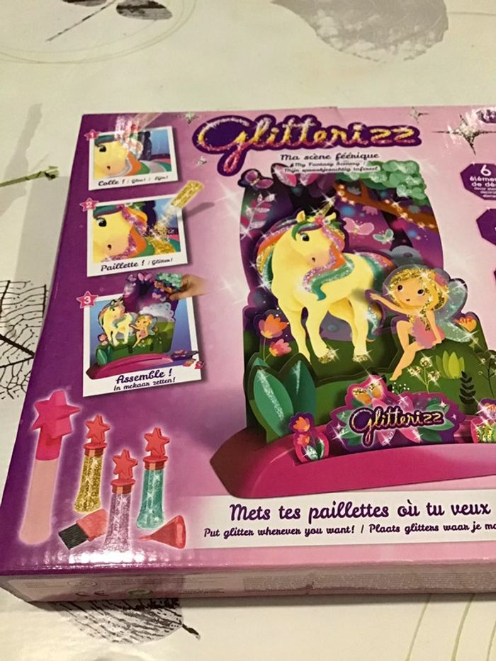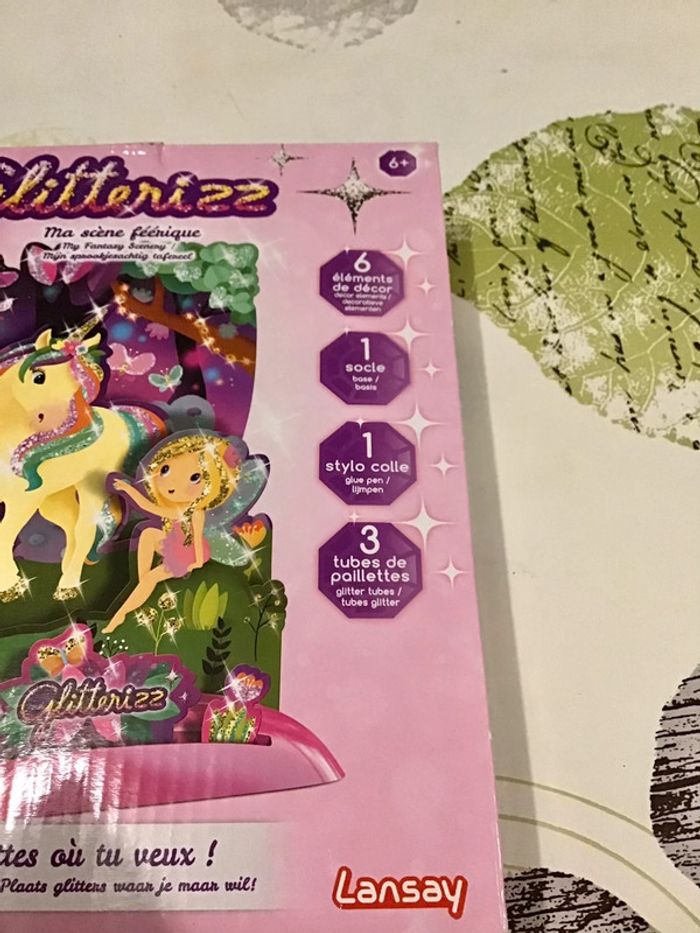 🌸 Kit creatif , Massène féerique, avec décor de six éléments à construire avec un socle trois tubes de paillettes et un stylo colle, marque Lansay ,Non Servis 🌸 Construit ton décor de scène féerique, applique de la colle à l’aide du stylo sur les parties que tu souhaites pailletée et soupoudre De paillettes les endroits où tu veux que ton décor soit pailletée , Utilise la brosse pour récupérer les paillettes en trop ⚠️⚠️ SI VOUS DÉSIREZ FAIRE UN LOT 📦 , 🌸N’hésitez pas à me le demander je ferait une annonce global de vos articles pour faire un seul FDP🌸🌸🌸 ➡️ N’HÉSITEZ PAS À M’AJOUTER DANS VOS FAVORIS