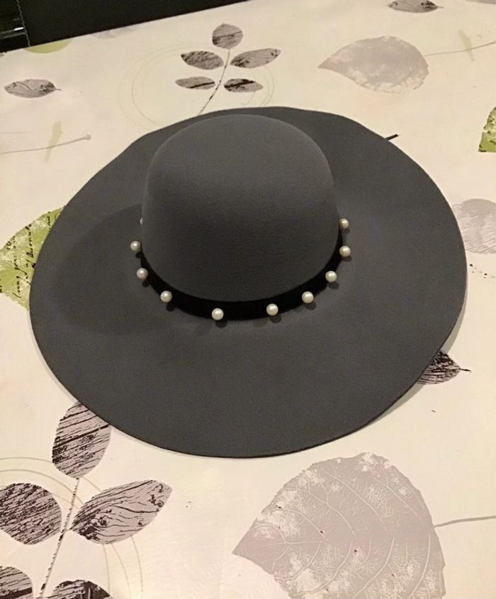 🌸 Chapeau de couleur gris de taille unique femme avec contour noir avec perles nacrées,Non Servis ⚠️⚠️ SI VOUS DÉSIREZ FAIRE UN LOT 📦 , 🌸N’hésitez pas à me le demander je ferait une annonce global de vos articles pour faire un seul FDP🌸🌸🌸 ➡️ N’HÉSITEZ PAS À M’AJOUTER DANS VOS FAVORIS