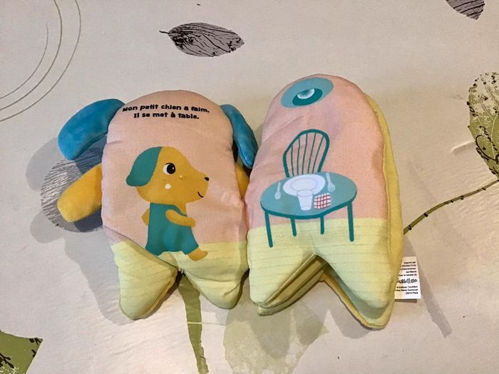 🌸 Doudou mon premier imagier doudou, à table mon petit chien,Non Servis 🌸 Doudou chien de 17 cm de long qui s’ouvre pour laisser place à un imagier, très doux de marque tourbillon ⚠️⚠️ SI VOUS DÉSIREZ FAIRE UN LOT 📦 , 🌸N’hésitez pas à me le demander je ferait une annonce global de vos articles pour faire un seul FDP🌸🌸🌸 ➡️ N’HÉSITEZ PAS À M’AJOUTER DANS VOS FAVORIS