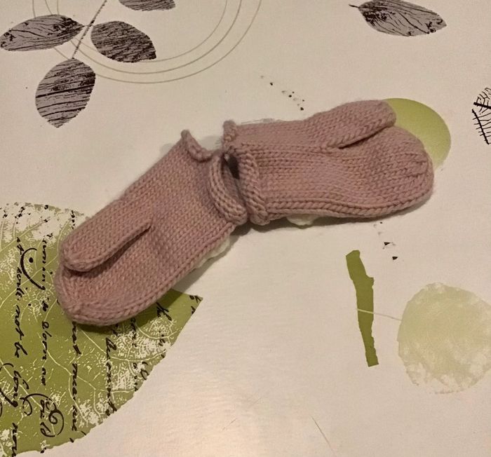 Paire de moufles vieux rose et blanc 12 mois environ - photo numéro 2
