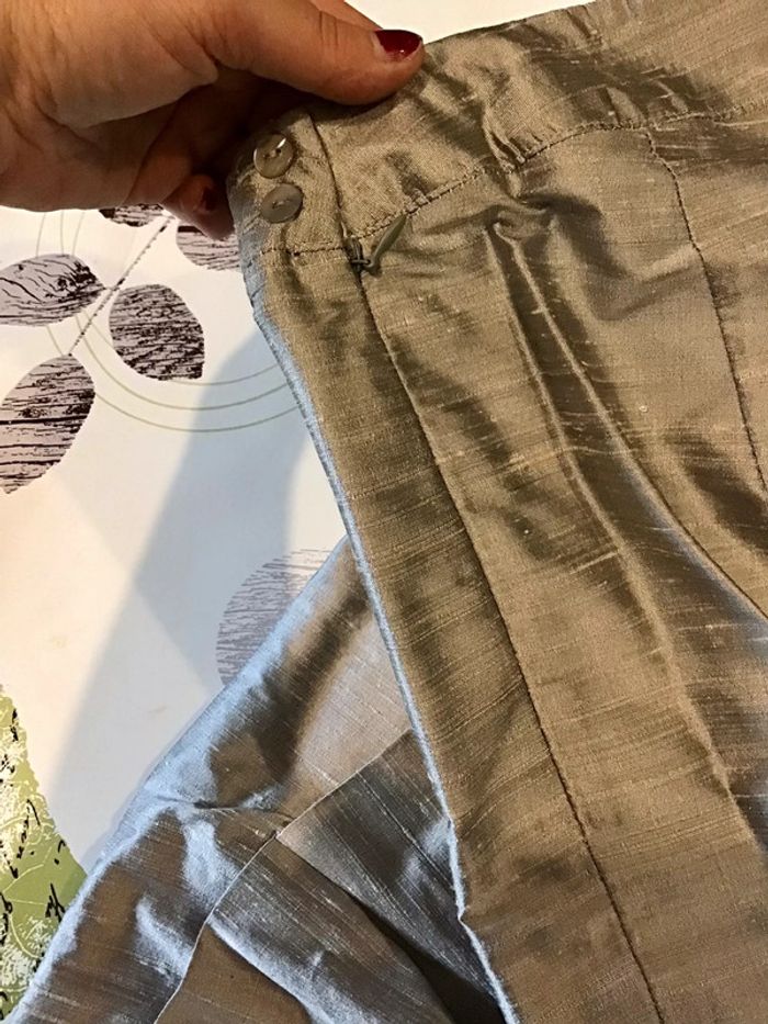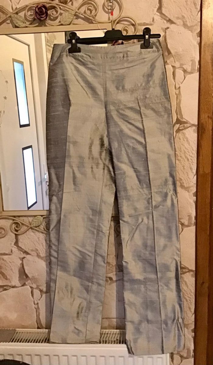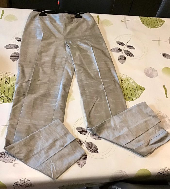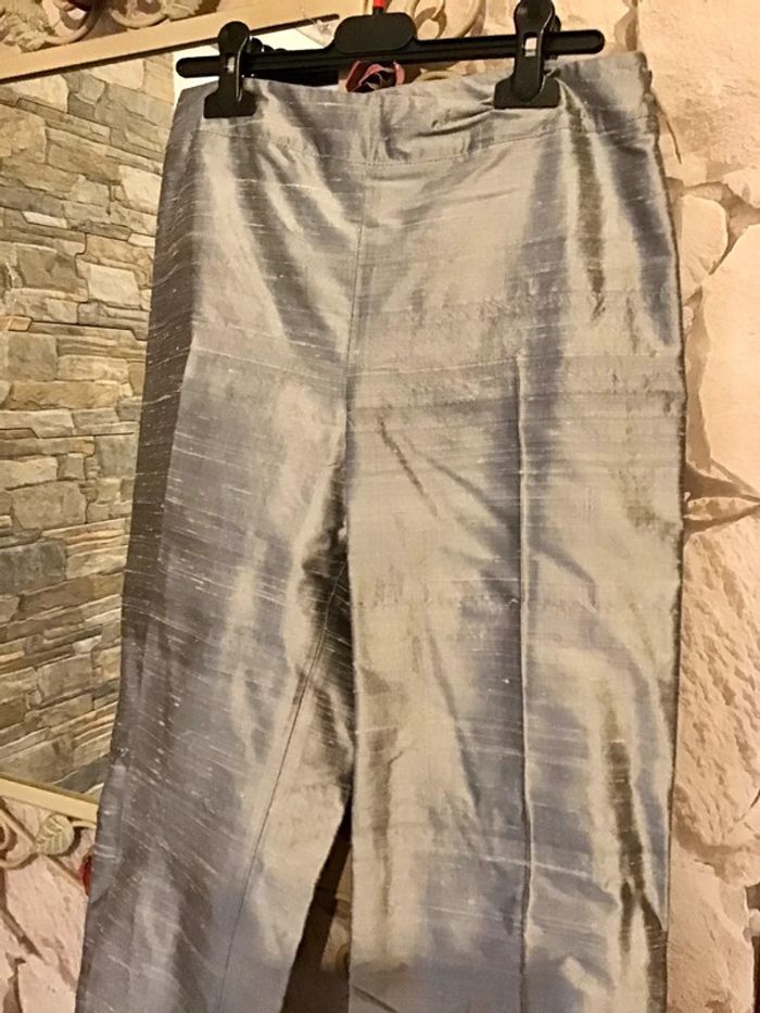🌸 Joli pantalon en soie 100 %, de coloris gris effet argenté métallisé, de taille 34,Non Servis 🌸 De marque Kirsten Krog design 🌸 Fermeture et bouton sur le côté ⚠️⚠️ SI VOUS DÉSIREZ FAIRE UN LOT 📦 , 🌸N’hésitez pas à me le demander je ferait une annonce global de vos articles pour faire un seul FDP🌸🌸🌸 ➡️ N’HÉSITEZ PAS À M’AJOUTER DANS VOS FAVORIS