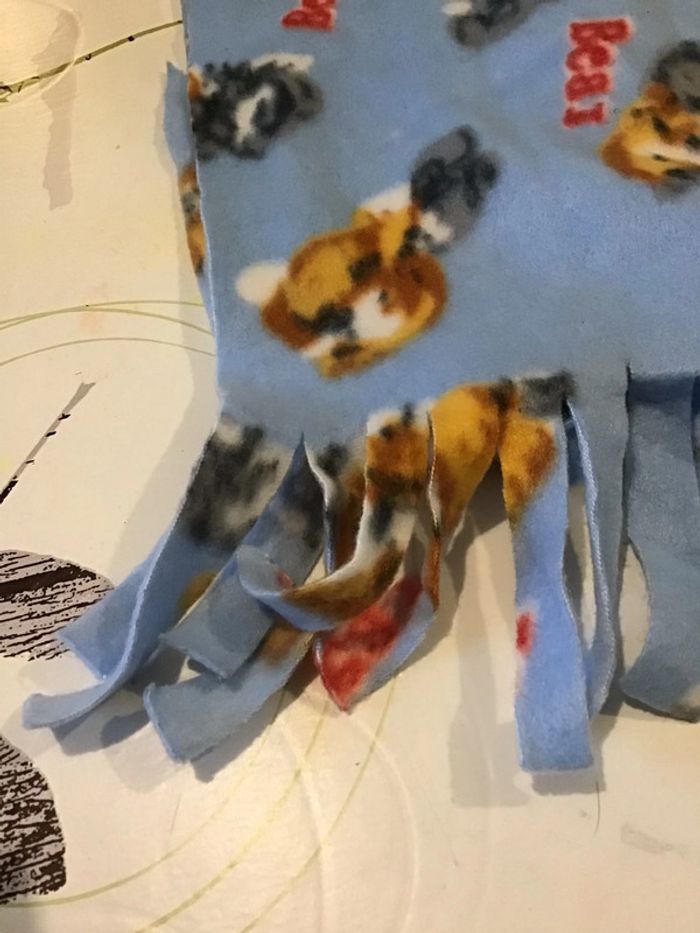 Petite écharpe polaire enfant bleu ciel motif chien chat 120cm - photo numéro 2