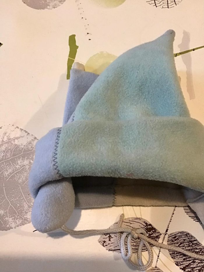 Bonnet polaire bleu clair et beige taille47/49 soit 6/12 mois - photo numéro 3