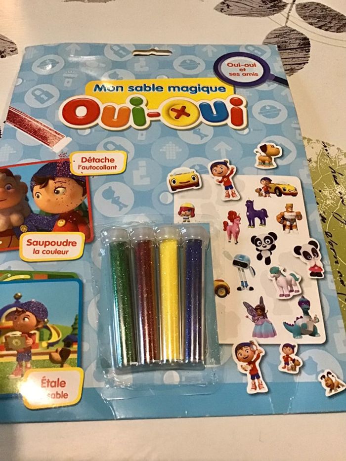 🌸 Pochette mon sable magique oui oui et ses amis, avec 4 tableau magique à créer, quatre tubes de sable pailleté, des stickers et une notice ,Non Servis 🌸 Détache autocollants soupoudre le sable est étale le ⚠️⚠️ SI VOUS DÉSIREZ FAIRE UN LOT 📦 , 🌸N’hésitez pas à me le demander je ferait une annonce global de vos articles pour faire un seul FDP🌸🌸🌸 ➡️ N’HÉSITEZ PAS À M’AJOUTER DANS VOS FAVORIS