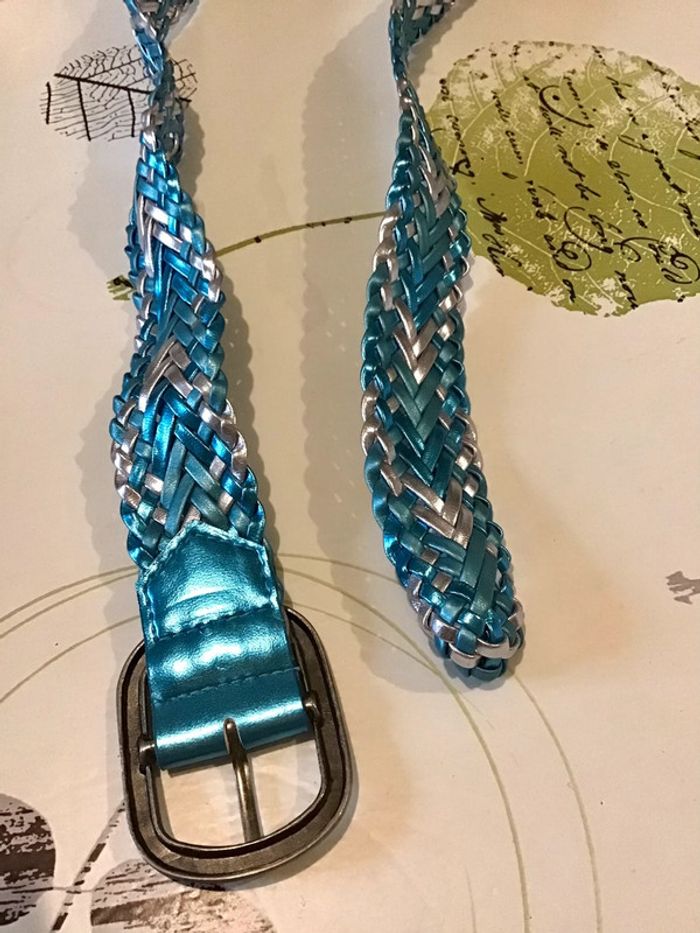 🌸 Ceinture taille unique coloris turquoise et argenté large de 4 cmNon Servis ⚠️⚠️ SI VOUS DÉSIREZ FAIRE UN LOT 📦 , 🌸N’hésitez pas à me le demander je ferait une annonce global de vos articles pour faire un seul FDP🌸🌸🌸 ➡️ N’HÉSITEZ PAS À M’AJOUTER DANS VOS FAVORIS