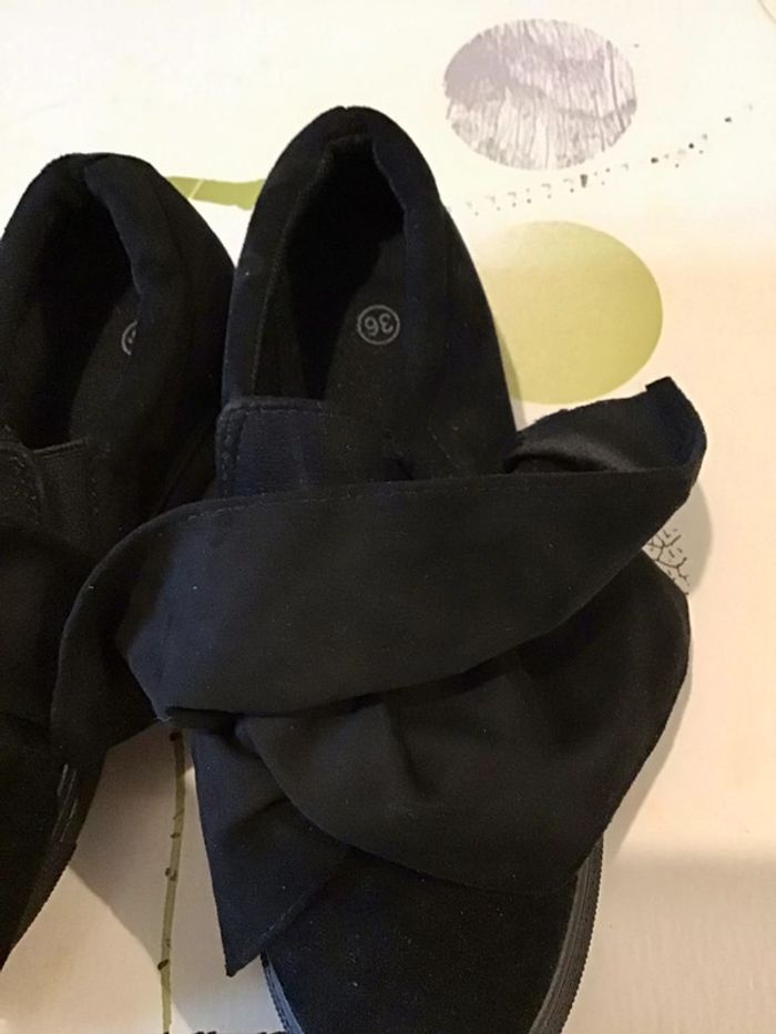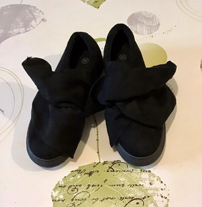 🌸 Paire de chaussures détente de couleur noir taille 36 effet velours, avec sur le dessus une bande de tissu qui peut se replier Non Servi ⚠️⚠️ SI VOUS DÉSIREZ FAIRE UN LOT 📦 , 🌸N’hésitez pas à me le demander je ferait une annonce global de vos articles pour faire un seul FDP🌸🌸🌸 ➡️ N’HÉSITEZ PAS À M’AJOUTER DANS VOS FAVORIS