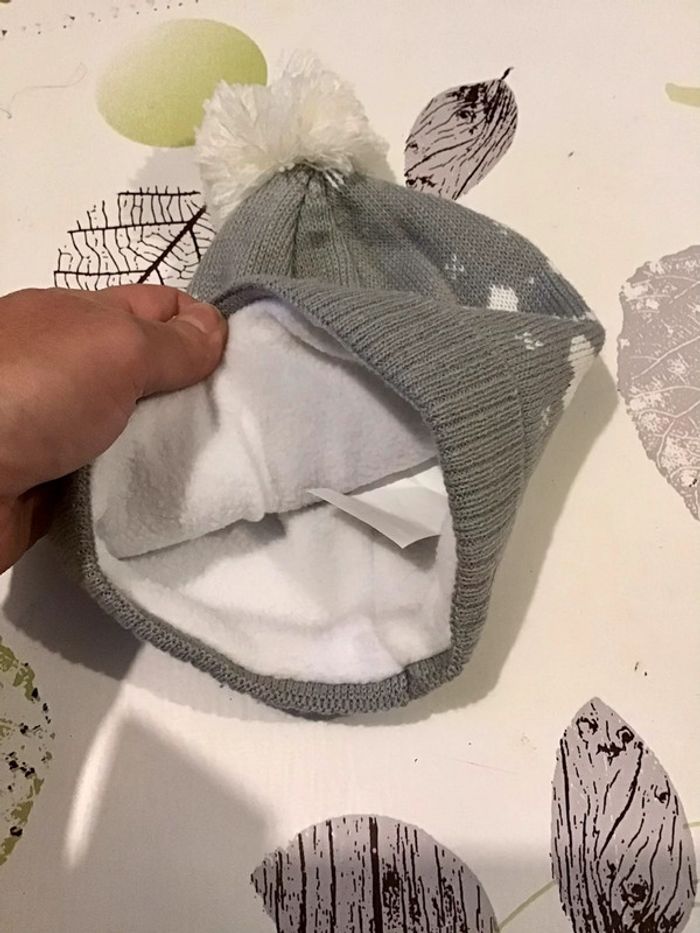 Bonnet gris et blanc avec pompon intérieur polaire taille 2/3 ans - photo numéro 2