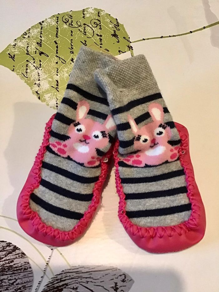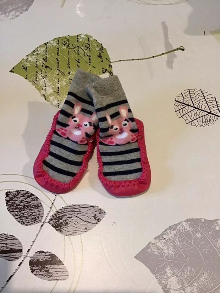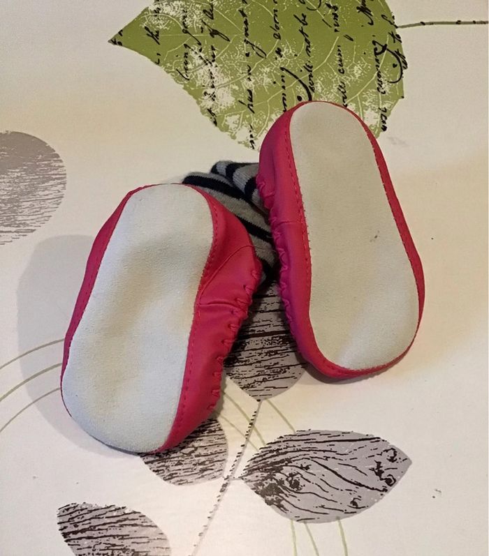 Paire de chaussons chaussettes semelle en cuir 6/9 mois - photo numéro 3