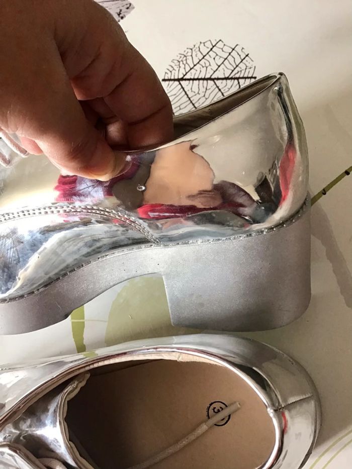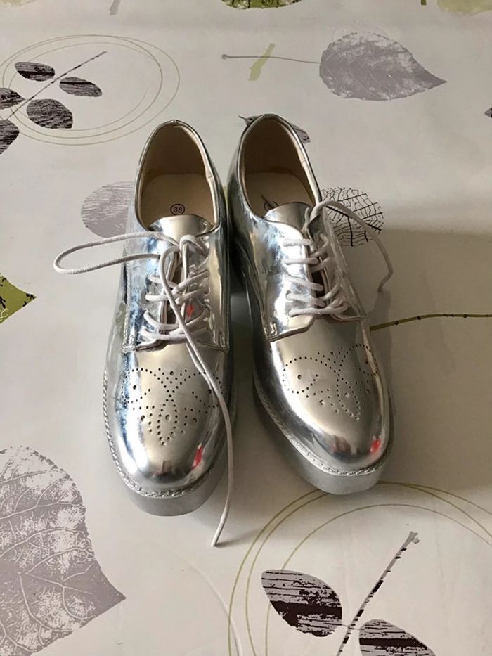 🌸 Chaussure argenté à talon carré taille 38 Non Servis 🌸 Talon de 6/cm et devant 2 cm 🌸 Petit trou du à l’antivol sur le cote intérieur mais pas méchant et qq petite trace sur le côté niveau semelle reste non mise et excellent état ⚠️⚠️ SI VOUS DÉSIREZ FAIRE UN LOT 📦 , 🌸N’hésitez pas à me le demander je ferait une annonce global de vos articles pour faire un seul FDP🌸🌸🌸 ➡️ N’HÉSITEZ PAS À M’AJOUTER DANS VOS FAVORIS
