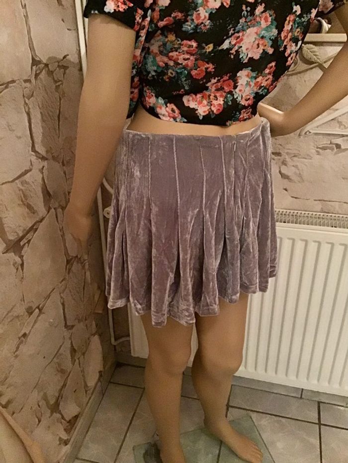 Mini jupe velours taille 38 Grise reflet argenté Missgoy - photo numéro 2