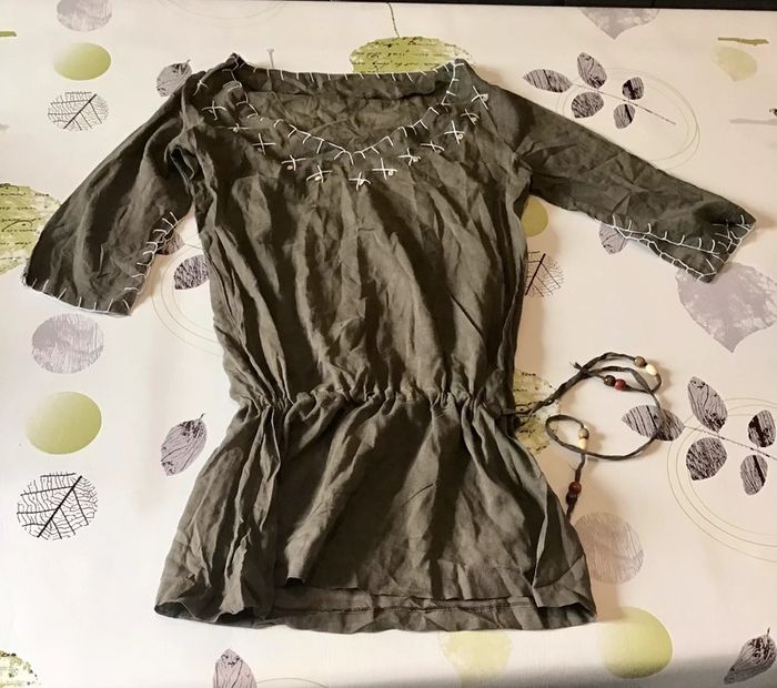 Tunique kaki 100% taille S 100% coton manche 3/4 - photo numéro 1