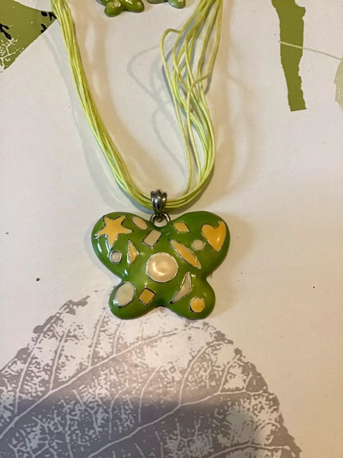 Ensemble parure bijoux collier et boucle d’oreille assorties ds  tons vert - photo numéro 3