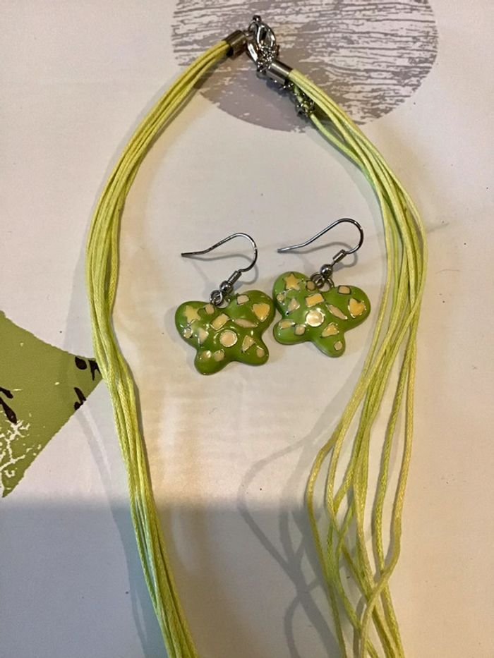 Ensemble parure bijoux collier et boucle d’oreille assorties ds  tons vert - photo numéro 1