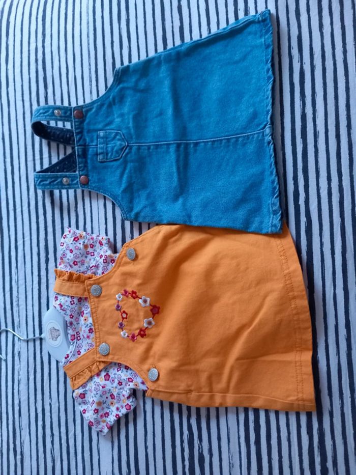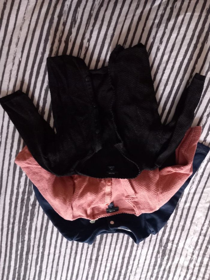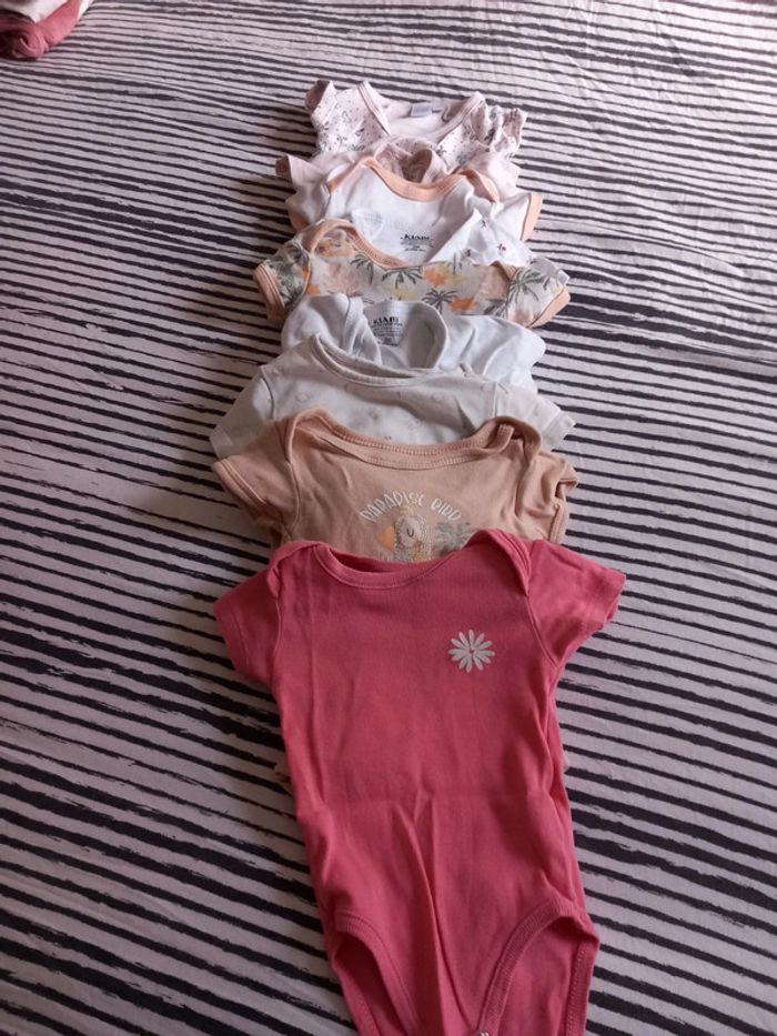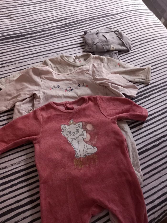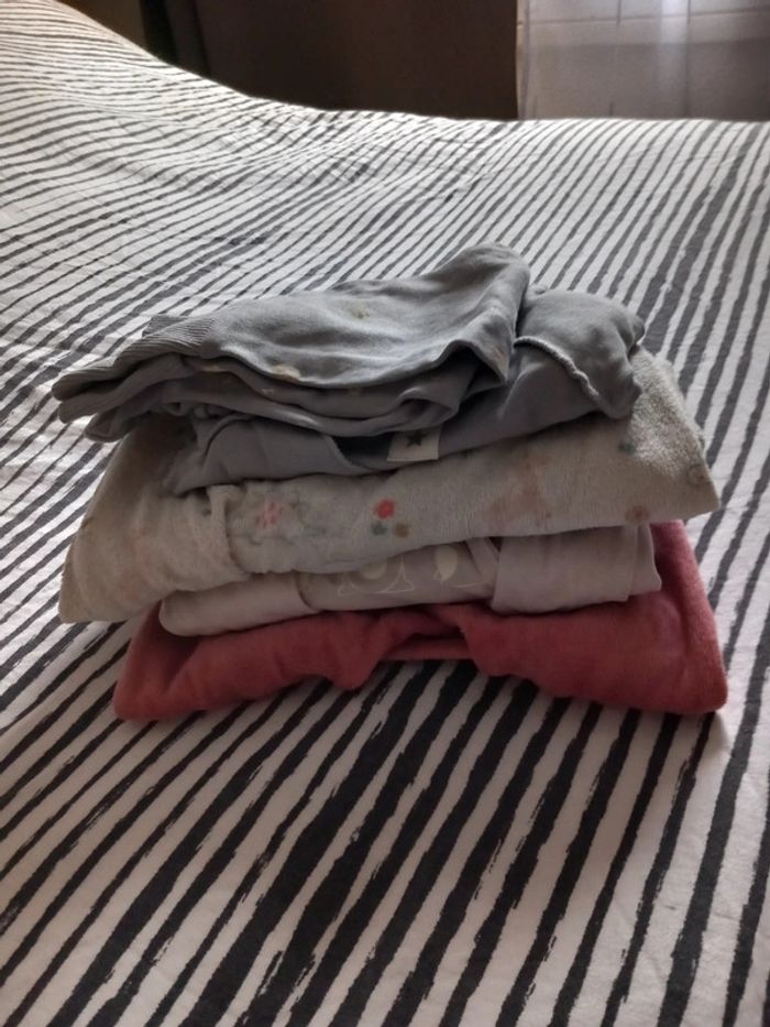3 gilets noir/ rose/ beige 4 pantalons 4 pyjamas 2 pull 7 robes 1 ensemble jogging 9 body manche courte 2 body manche longue