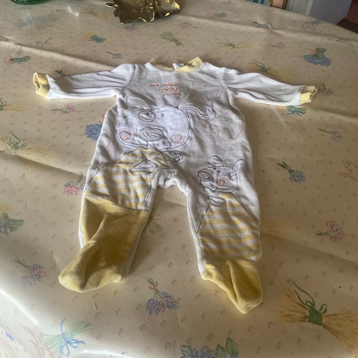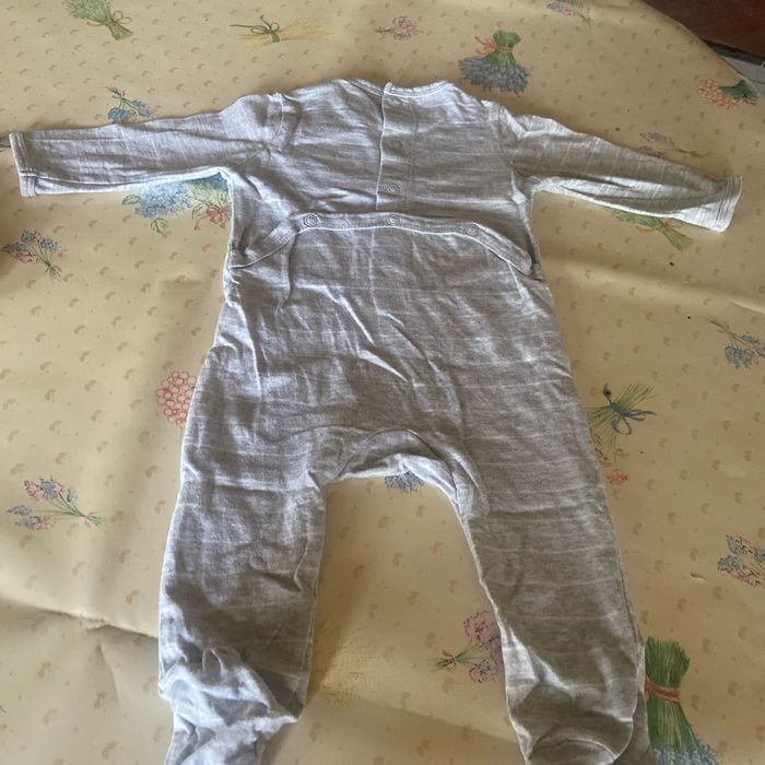 Lots pyjamas 6mois 63 69 cm le gris marque kiabi et le jaune présente sur pression un peut effacer