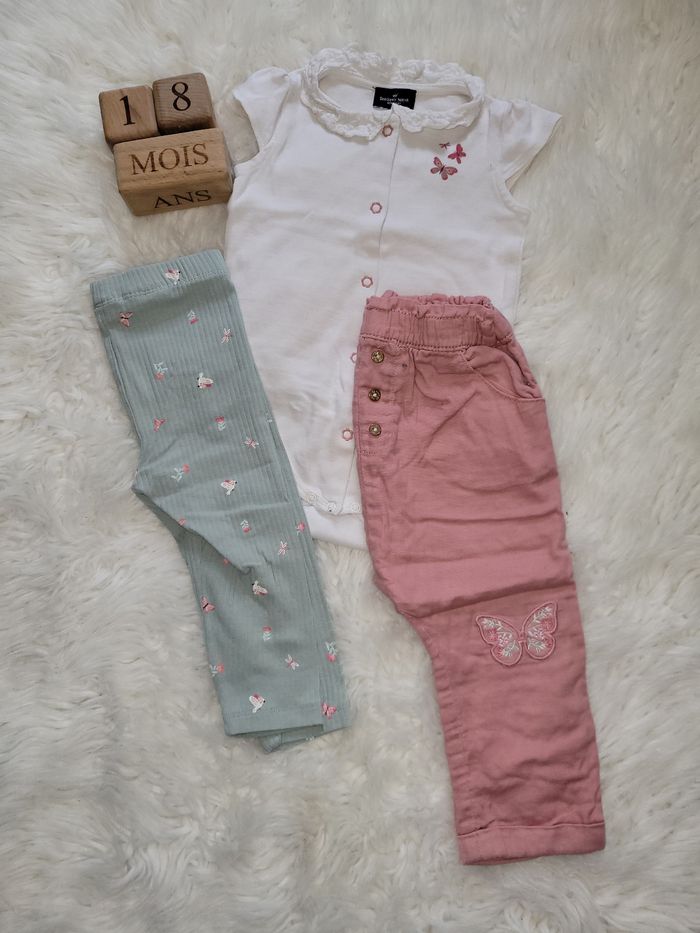 Ensemble constitué d un body, d un leggin neuf que j ai retrouvé trop tard et d un pantalon papillon.