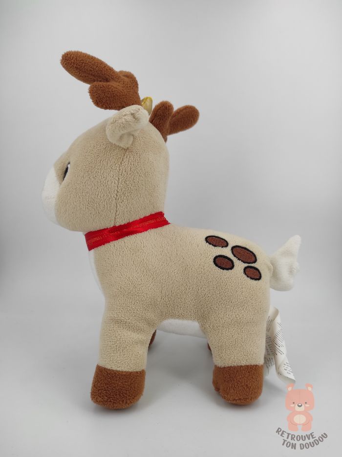 🦌 Peluche Renne Beige avec ruban rouge, Les pyjamas Rêveurs 📏 Dimension : 20 cm environ ✨ Occasion, très bon état 🧼 Lavé avec lessive hypoallergénique 👀 Vous achetez le doudou que vous voyez sur les photos.