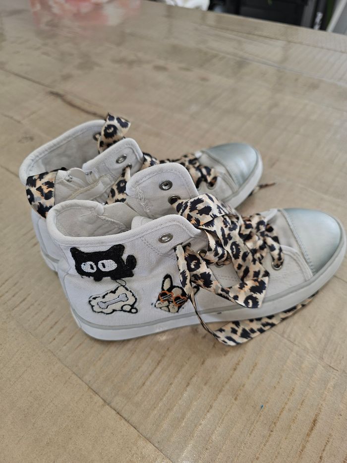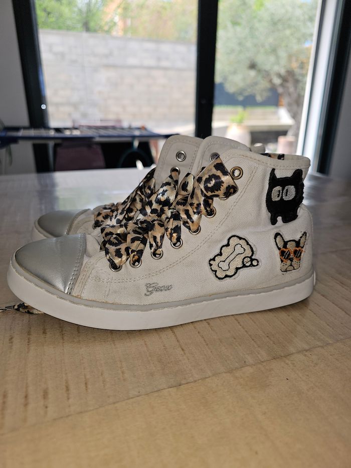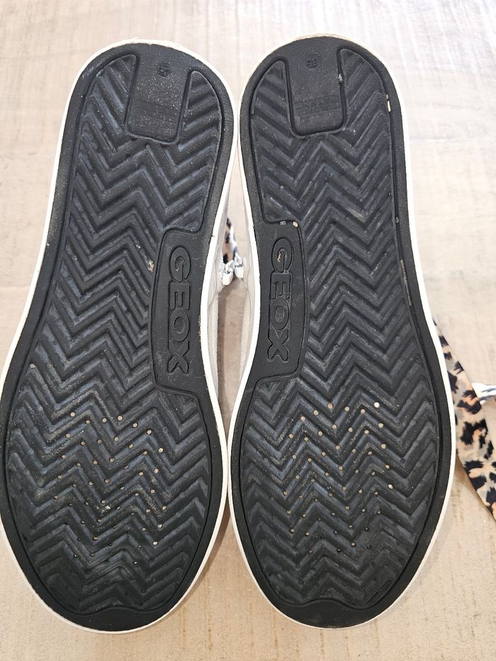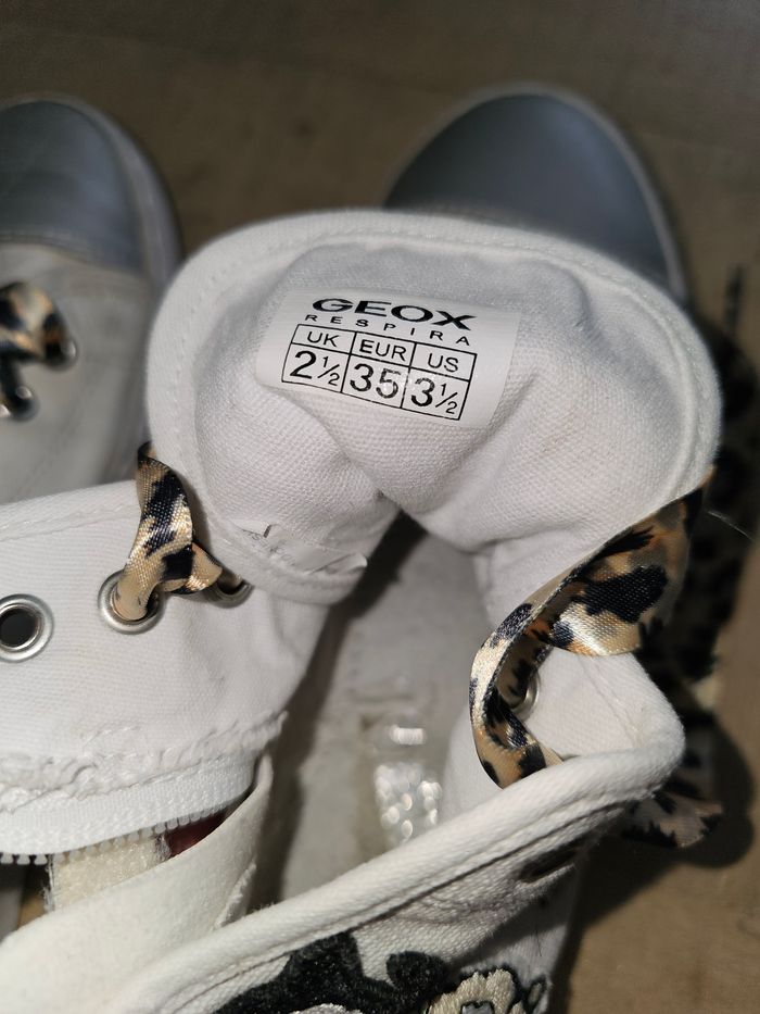 Baskets hautes Geox, taille 35. En bon état. Lacets couleur léopard. Avec fermeture éclair et lacets.