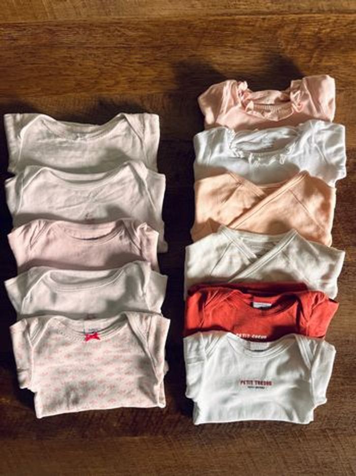Lot de 11 bodies 3 mois en parfait état Plusieurs marques : Petit Bateau, Okaidi, Chocolatine