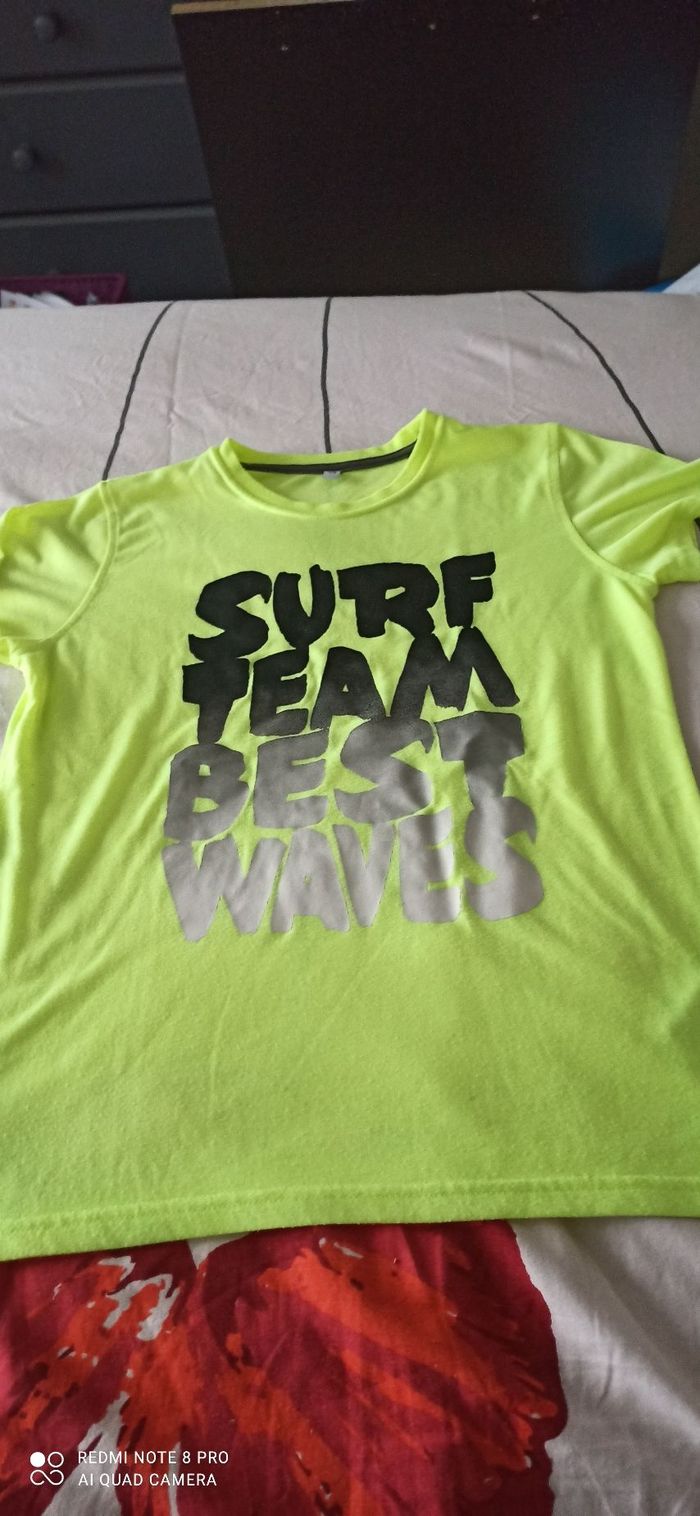 Vends t shirt jaune fluo imprime 12 ans
