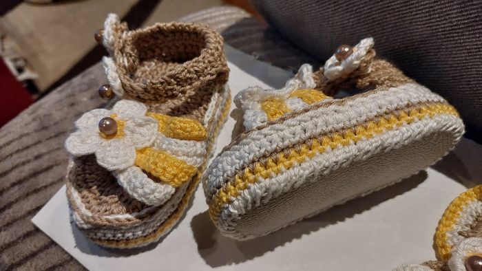 Fait à main. Chaussures. Lassé pour le cheveux et pince pour tétine. Il peut être commandé d'autres couleurs