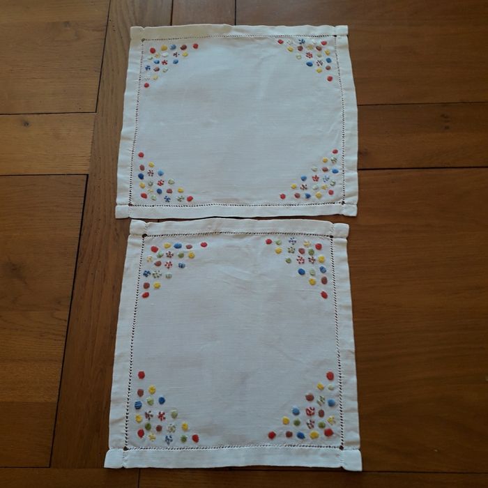 Lot de 2 napperons vintage 25 x 25 et 22 x 22 cm broderies main