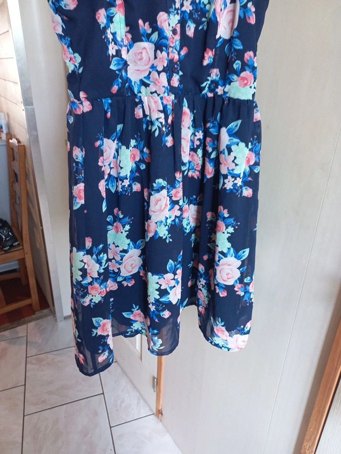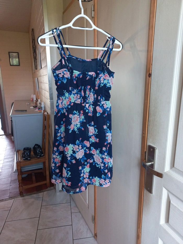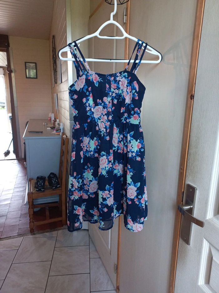 Robe bleue imprimée fleurs 🌸 Jennyfer Taille s Bretelles réglables