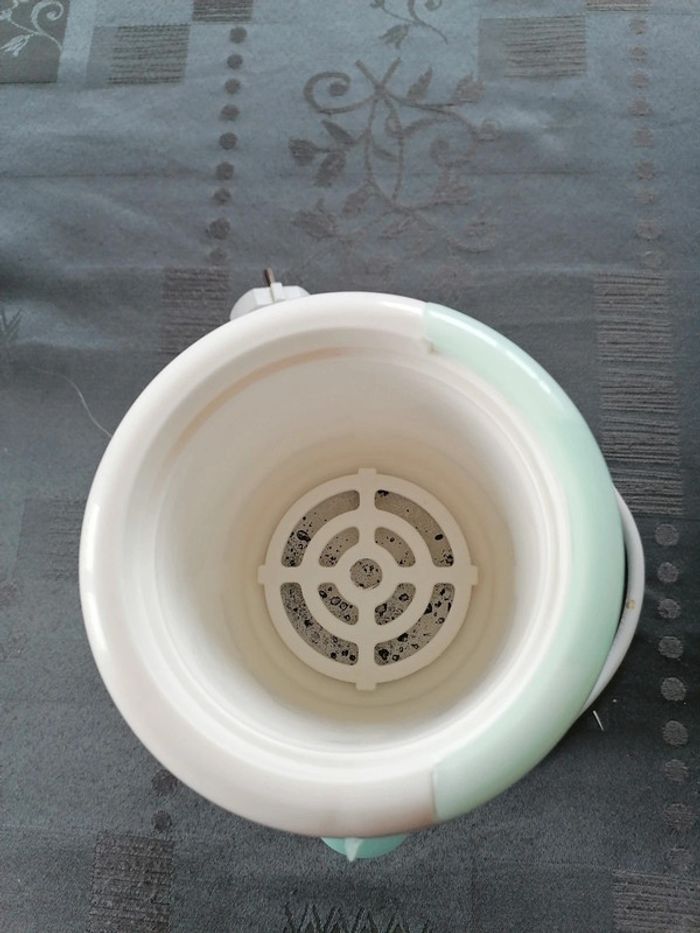 Chauffe biberon tex avec panier pour le pot Bon état Fonctionne parfaitement Le fond est blanchi par le calcaire ce qui est normal
