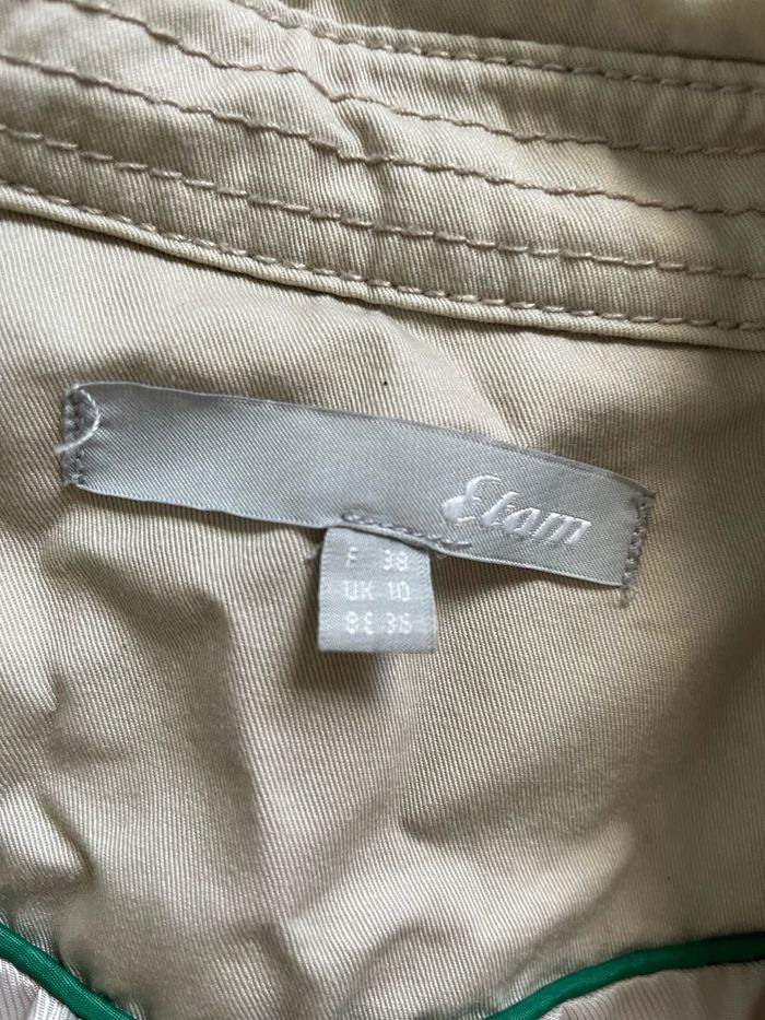 💬 Trench noir. Couleur passée (visible surtout au niveau des épaules). Un bouton décoratif manquant et tissu qui commence à s’élimer à certains endroits (voir photos). Trench beige et noir. Dans un état satisfaisant : bouton intérieur manquant, tâche sur la manche droite, liseré noir en simili cuir qui se délite sur tout le manteau (possibilité de retirer tout le simili, cela laissera apparaître les bordures en coton noir) et bordures des manches colorées. Toutes les imperfections sont en photo. 🛍️ Marque Etam 📏 Taille 36 (noir) et 38 (beige) 🧺 Lavés puis stockés dans une armoire en attendant son nouveau propriétaire.