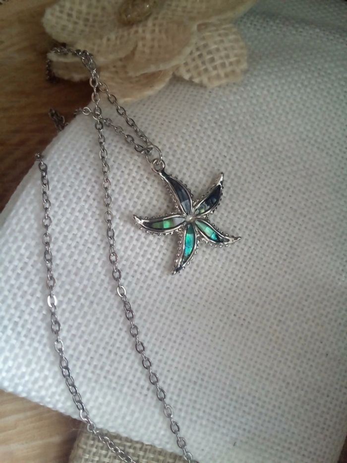 Collier étoile argentée avec pierres en ormeaux naturels - photo numéro 2