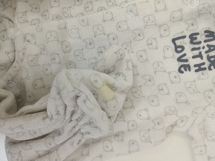 Pyjama gris blanc, tâche sur le pied Orchestra 1 mois
