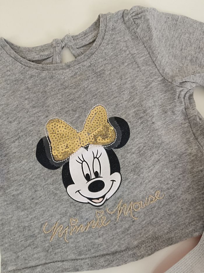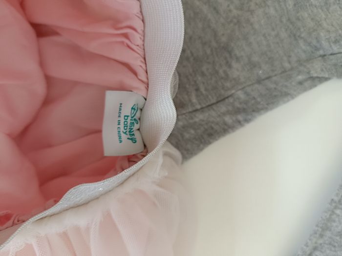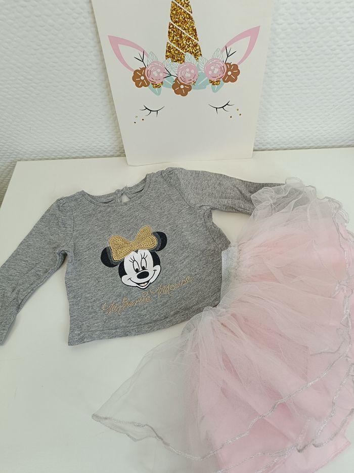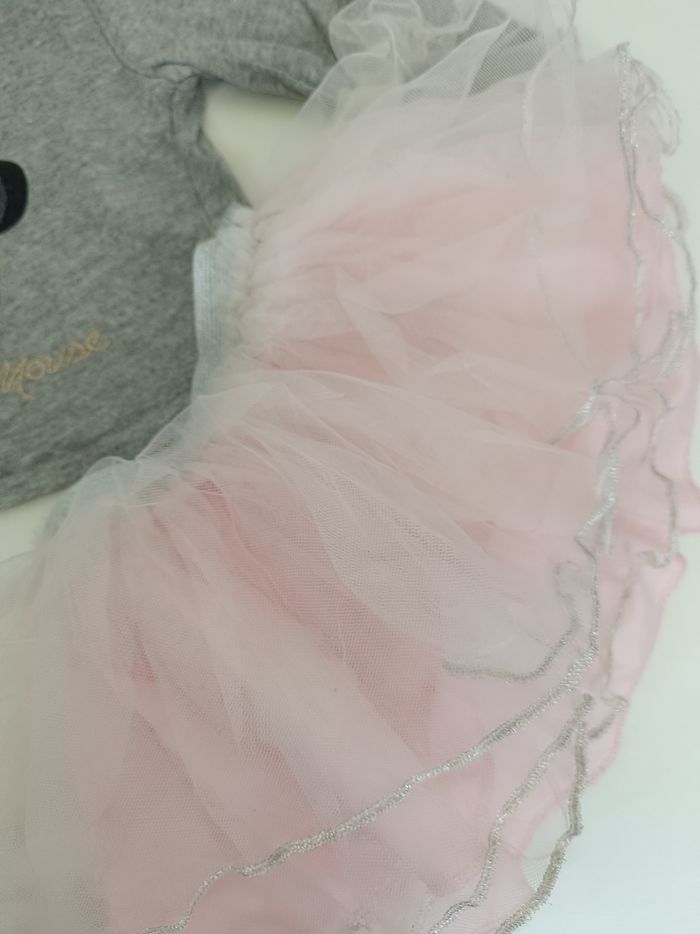 Tee shirt manches longues Minnie, noeud en sequins Jupe rose avec tulle Un peu chiffonnée Disney baby primark 3-6 mois