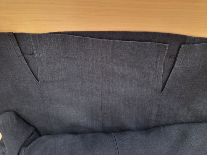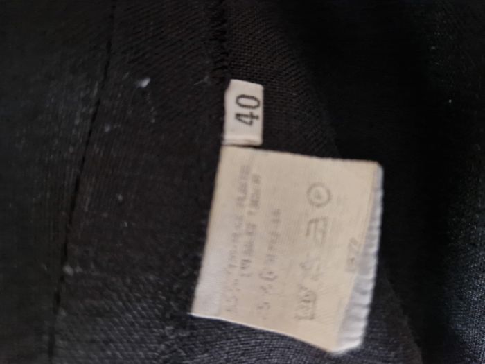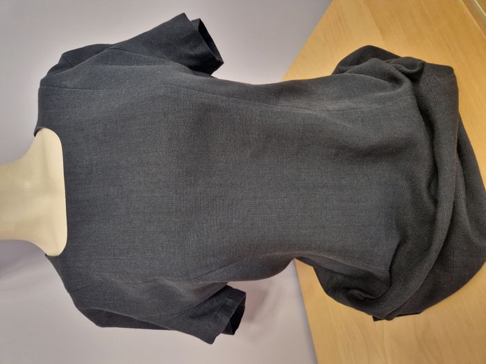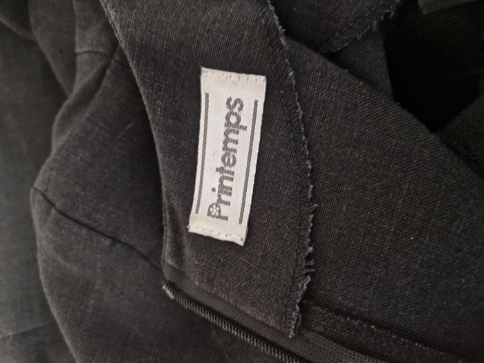 Robe manches courtes, col rectangulaire, légèrement cintrée, probablement en lin (étiquette illisible) Longue fermeture à glissière dans le dos et 2 fentes d'aisance Taille 40 - Longueur à partir de l'aisselle : 69.5 cm Marque : Printemps TB état