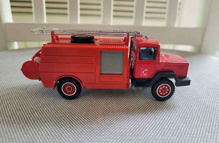 Vends véhicule de pompiers. Modèle IVECO citerne rural. Échelle 1/50. Marque Solido. Excellent état, juste exposé dans une vitrine.