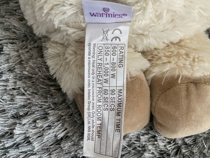 Bouillotte peluche à chauffer au micro - onde. Utilisé que très peu de fois Convient à tout âge même au nourrisson Prix en magasin : 25€ Elle est en très bonne état.