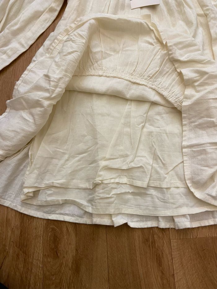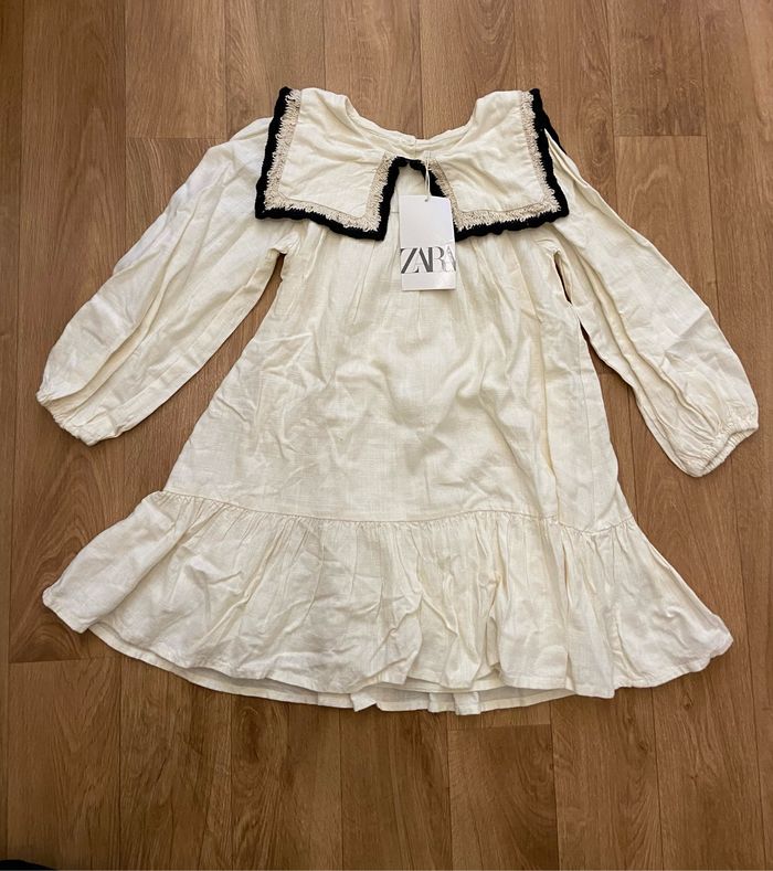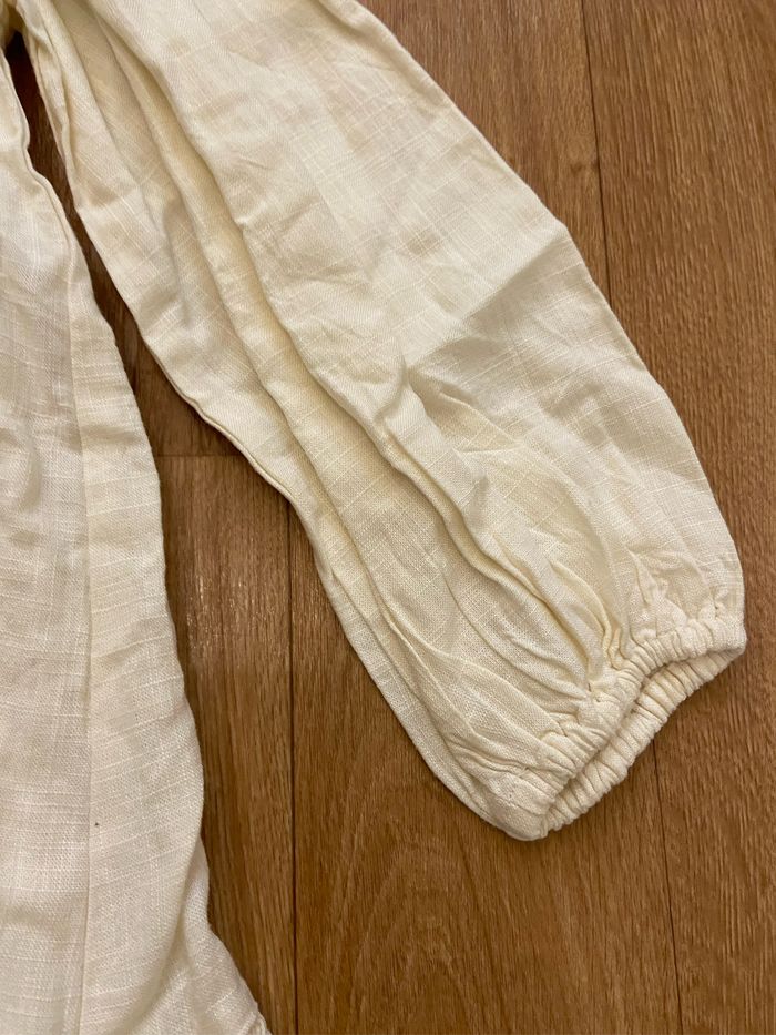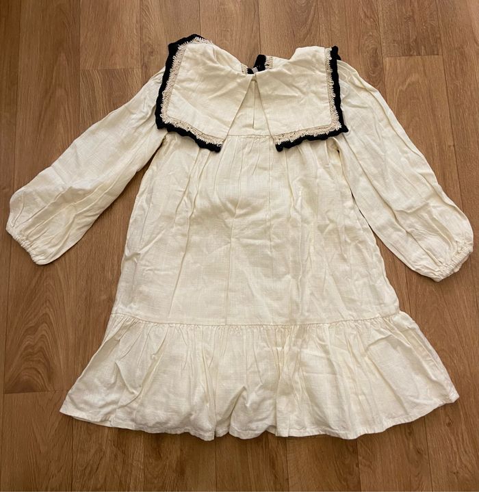 Robe à col Claudine bi matière en lin Doublure coton Extérieur viscose et lin Crème