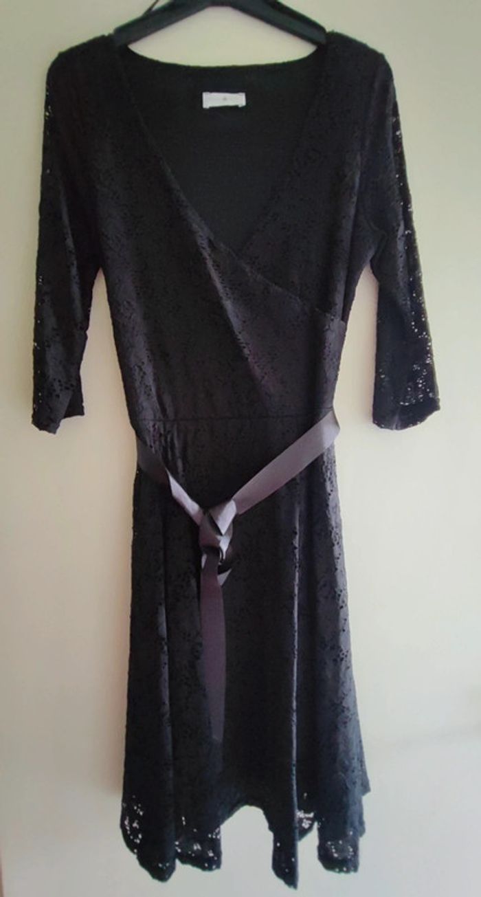 Robe noire Cache Cache taille 38, avec ceinture amovible. Effet dentelle. #ledressdejena_tailleM #ledressdejena_taille38