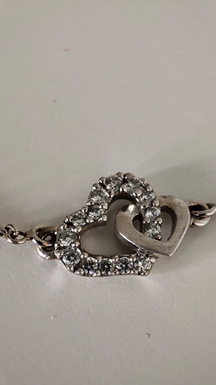 Bracelet en argent 925 et oxyde de zirconium. Cœurs entremêlés. Longueur réglable : 15 / 16,5 / 18 cm #ledressdejena_bijoux